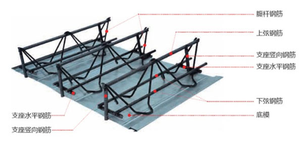 回答:由于鋼筋桁架模板長度的限制,不能通長布置,在梁上兩塊模板拼接處,須按一定構(gòu)造及設計要求布置短鋼筋,將兩塊模板上的桁架鋼筋綁扎連接起來,以達到桁架鋼筋在使用階段的受力作用。