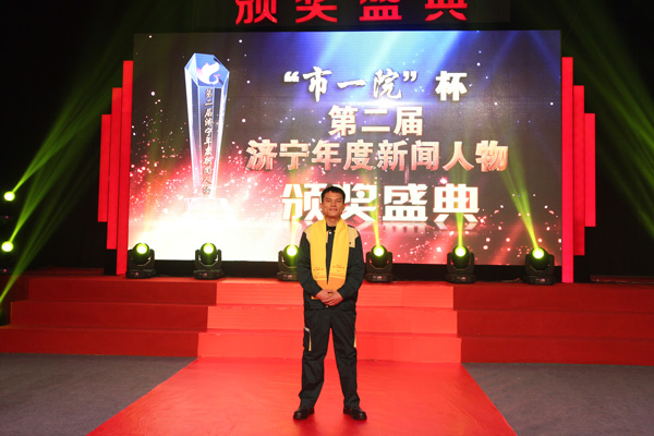 在頒獎盛典上,吳振興、王沖、董蕊、李憲釗等10位同志被授予第二屆濟寧年度新聞人物。濟寧市總工會黨組書記、常務副主席岳秀云親自為經典職工吳振興頒獎。