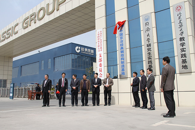 4月17日上午,經(jīng)典集團(tuán)舉辦中國(guó)京冶經(jīng)典鋼結(jié)構(gòu)制造基地揭牌儀式。中國(guó)鋼結(jié)構(gòu)協(xié)會(huì)秘書長(zhǎng)侯兆新,兗州區(qū)委常委、工業(yè)園區(qū)黨工委副書記、管委會(huì)副主任唐軍共同為基地揭牌。中國(guó)京冶工程技術(shù)有限公司鋼結(jié)構(gòu)事業(yè)部常務(wù)副總經(jīng)理常好誦,副總經(jīng)理桂宇飛,中國(guó)鋼結(jié)構(gòu)協(xié)會(huì)副秘書長(zhǎng)李寧,行業(yè)事務(wù)部部長(zhǎng)戴長(zhǎng)河,經(jīng)典集團(tuán)董事長(zhǎng)苗樹文,總經(jīng)理杜福生,生產(chǎn)總經(jīng)理王忠策,工會(huì)主席高建國(guó),企劃部經(jīng)理史振華等參加了揭牌儀式。
