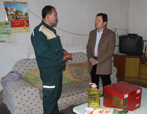 每到一戶,集團(tuán)領(lǐng)導(dǎo)與職工家屬親切握手,面對(duì)面促膝交談,了解職工的家庭收入、子女入學(xué)、生活實(shí)際困難情況。送去大米、面粉、食用油等生活物資及600元公司慰問金,集團(tuán)領(lǐng)導(dǎo)鼓勵(lì)職工振奮精神,充滿信心,相信集體,克服眼前困難。
