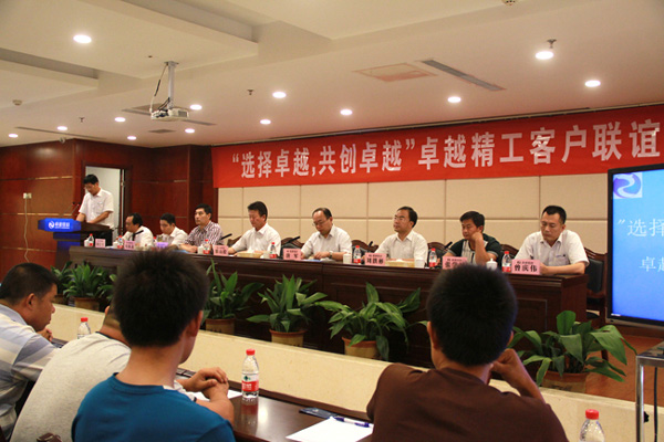 會(huì)議上,卓越精工總經(jīng)理劉海龍介紹了卓越精工一年來(lái)的發(fā)展歷程及基本情況,劉總在發(fā)言中談到,10個(gè)月300多天,卓越人保持了創(chuàng)業(yè)激情,沒(méi)日沒(méi)夜地干,經(jīng)歷了創(chuàng)業(yè)期的風(fēng)風(fēng)雨雨,承受了前所未有的壓力,戰(zhàn)勝了無(wú)數(shù)困難和挑戰(zhàn)才有了今天,我們忘不了政府領(lǐng)導(dǎo)在建廠時(shí)幫我們征地跑政策手續(xù)落實(shí)水電氣確保了工程進(jìn)度、忘不了中國(guó)有色金屬研究院的專家們給我們的技術(shù)支持幫我們克服了技術(shù)難關(guān),更忘不了我們前期在做市場(chǎng)推廣時(shí)遇到困難給予我們幫助和支持的你們特別是臨沂市場(chǎng)張學(xué)好總經(jīng)理做了我們公司的第一個(gè)代理經(jīng)銷商,正是你們大家給了我們卓越人信心和動(dòng)力!之后,劉海龍總經(jīng)理詳細(xì)介紹了公司經(jīng)營(yíng)理念、人才、設(shè)備、產(chǎn)品、市場(chǎng)等方面的情況,給與會(huì)嘉賓以極大的鼓舞。