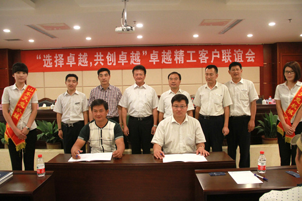 會(huì)議期間,卓越精工集團(tuán)有限公司營(yíng)銷部王世峰經(jīng)理與沂水經(jīng)銷商張學(xué)好現(xiàn)場(chǎng)簽訂了特約經(jīng)銷商協(xié)議。