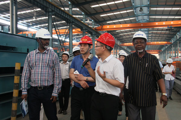 駐華大使們參觀了經(jīng)典集團(tuán)的生產(chǎn)車間、辦公樓、職工培訓(xùn)中心、宴會廳、愛心超市和千人職工餐廳。苗董事長向非洲客人介紹了經(jīng)典集團(tuán)的生產(chǎn)經(jīng)營、技術(shù)創(chuàng)新、產(chǎn)學(xué)研合作、人才引進(jìn)培養(yǎng)、企業(yè)文化建設(shè)、經(jīng)典產(chǎn)業(yè)發(fā)展等有關(guān)情況。大使們對經(jīng)典集團(tuán)的科學(xué)化、信息化、現(xiàn)代化的企業(yè)管理給予高度評價,對經(jīng)典集團(tuán)在飛速發(fā)展中取得的成就表示欽佩。