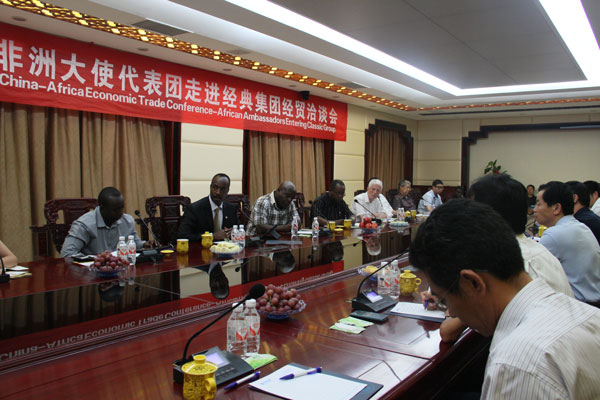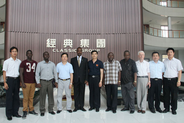 7月15日--17日由中國信息協(xié)會民營企業(yè)分會組織,盧旺達(dá)駐華使館查爾斯大使作為非洲經(jīng)貿(mào)考察團(tuán)團(tuán)長率領(lǐng)烏干達(dá)駐華大使、南蘇丹駐華公使、阿爾巴尼亞駐華大使以及盧旺達(dá)駐華商務(wù)參贊到經(jīng)典集團(tuán)洽談業(yè)務(wù)合作。中國信息協(xié)會民營企業(yè)分會會長張鋁,國際部部長關(guān)偉娜,中國駐湯加王國前大使孫增森,經(jīng)典集團(tuán)董事長苗樹文,總經(jīng)理杜福生及有關(guān)人員等陪同了此次活動。