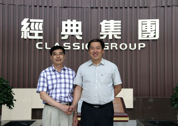 薛教授一行首先參觀了經(jīng)典集團(tuán)的文化館、項(xiàng)目管理中心、綜合辦公室、職工培訓(xùn)室、愛心超市和閱覽室。苗董事長(zhǎng)簡(jiǎn)要介紹了經(jīng)典集團(tuán)的生產(chǎn)經(jīng)營(yíng)、產(chǎn)學(xué)研合作、技術(shù)創(chuàng)新、文化建設(shè)等有關(guān)情況。薛教授對(duì)近年來經(jīng)典集團(tuán)的快速發(fā)展給予高度評(píng)價(jià)。