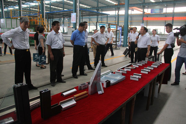 在觀摩會現(xiàn)場,與會領(lǐng)導(dǎo)首先聽取了劉董事長關(guān)于企業(yè)發(fā)展情況的匯報,隨后深入公司年產(chǎn)10萬噸高端鋁型材的生產(chǎn)車間,并現(xiàn)場聽取了項目負(fù)責(zé)人的情 況介紹。通過實地觀摩和聽取匯報,觀摩團領(lǐng)導(dǎo)對我公司能夠按照科學(xué)發(fā)展觀和區(qū)委區(qū)政府關(guān)于跨越發(fā)展的總要求,堅持解放思想,抓住機遇,高點定位,高點建設(shè),開拓進(jìn)取,攻堅破難,加快發(fā)展的做法給予充分肯定,并對我公司生產(chǎn)經(jīng)營所取得的成績給予高度評價和贊賞。