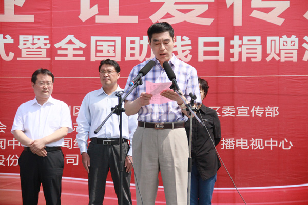 兗州區(qū)委常委、宣傳部長(zhǎng)初建偉,副區(qū)長(zhǎng)李勇,濟(jì)寧市廣播電視臺(tái)副臺(tái)長(zhǎng)馬漢濤,經(jīng)典集團(tuán)董事長(zhǎng)苗樹文,總經(jīng)理杜福生,濟(jì)寧市廣播電視臺(tái)、兗州區(qū)委宣傳部、殘疾人聯(lián)合會(huì)、志愿者協(xié)會(huì)、廣播電視中心等有關(guān)部門負(fù)責(zé)人出席了此次助殘活動(dòng)。