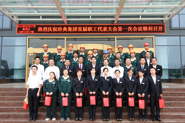 9月27日經(jīng)典集團(tuán)首屆職工代表大會(huì)第一次會(huì)議在集團(tuán)會(huì)議中心召開,集團(tuán)公司董事長苗樹文,總經(jīng)理杜福生,工會(huì)主席高建國等工會(huì)領(lǐng)導(dǎo)及車間后勤職工代表35人參加了會(huì)議。