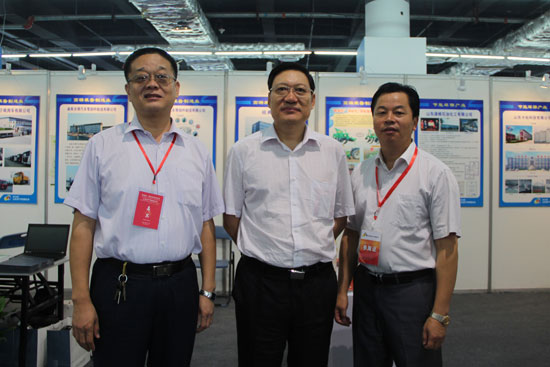 濟(jì)寧經(jīng)信委趙士斌主任(中)、王佑兵副主任(左)觀摩經(jīng)典集團(tuán)展區(qū)