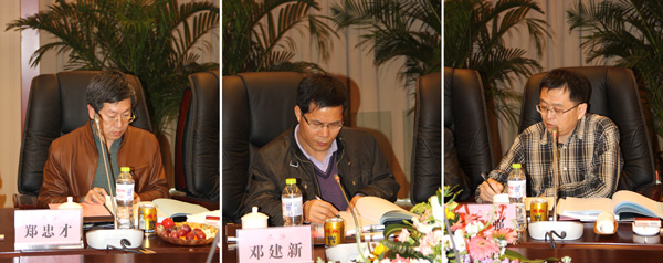科技成果鑒定會主任委員鄧建新(中間)副主任委員鄭忠才、王強現(xiàn)場評議