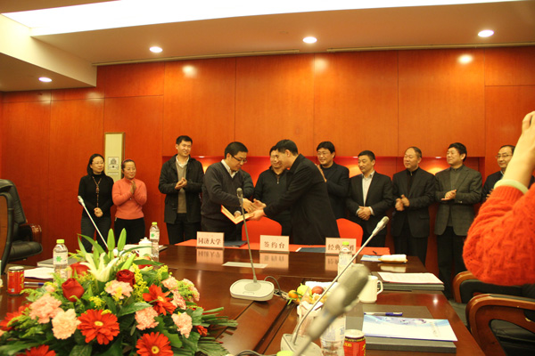 1月18日下午,我公司與同濟(jì)大學(xué)舉行長期戰(zhàn)略合作協(xié)議簽約暨授牌儀式在會(huì)議室隆重舉行。集團(tuán)公司苗樹文董事長與同濟(jì)大學(xué)土木工程學(xué)院李元齊教授簽署“關(guān)于經(jīng)典集團(tuán)與同濟(jì)大學(xué)合作意向協(xié)議書”,并向李教授頒發(fā)了聘書。出席此次會(huì)議的有市委常委宣傳部部長初建偉,開發(fā)區(qū)主任周廣全,發(fā)改局劉局長,經(jīng)信局韓局長,科技局周局長,國土資源局王局長等。會(huì)議由上海市科技成果轉(zhuǎn)化促進(jìn)會(huì)秘書長姚偉民主持。