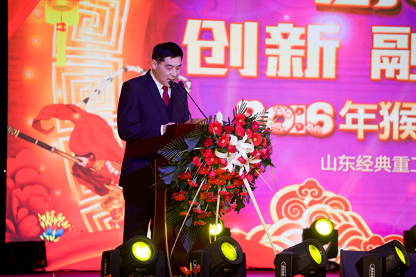 2月1日,山東經(jīng)典重工集團(tuán)股份有限公司在宴會中心舉辦“創(chuàng)新 融合 升級”2016年猴舞新春團(tuán)拜會,慶祝新春佳節(jié)的到來。經(jīng)典集團(tuán)各子、分公司部分員工及家屬代表千余人參加團(tuán)拜會。