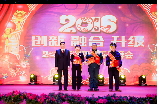 經(jīng)典集團(tuán)董事長苗樹文首先致新春賀詞,對2015年集團(tuán)取得的成績進(jìn)行了總結(jié),鼓舞全體員工精誠團(tuán)結(jié)、奮發(fā)有為,實現(xiàn)2016年經(jīng)典產(chǎn)業(yè)轉(zhuǎn)型升級、創(chuàng)新發(fā)展、融合發(fā)展,并向全體參會人員和社會各界朋友致以新年的問候。總經(jīng)理杜福生宣讀了《關(guān)于2015年度優(yōu)秀員工和最佳團(tuán)隊的表彰決定》,通過表彰獎勵,營造了廣大員工學(xué)習(xí)先進(jìn)、爭當(dāng)楷模的濃厚氛圍。