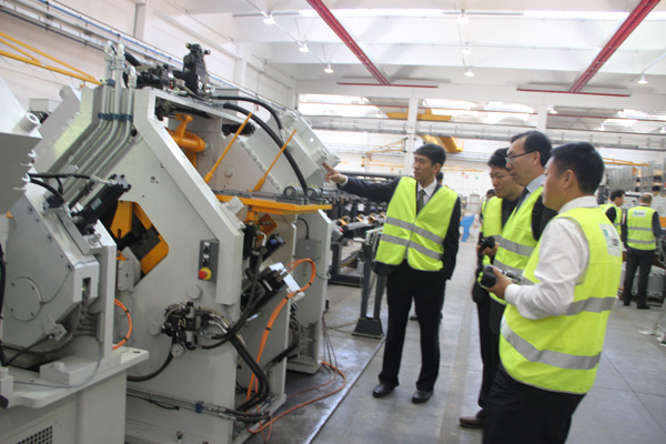 在結(jié)束對西歐鋼構(gòu)廠的考察后,考察團(tuán)隨后又參觀考察了菲賽普公司總廠,聽取了公司主管人員的介紹,并進(jìn)行了現(xiàn)場交流。在該公司主管人員的陪同下,考察團(tuán)深入生產(chǎn)車間和試驗(yàn)基地仔細(xì)觀看了設(shè)備產(chǎn)品的加工、組裝和檢驗(yàn)的全過程,并觀看了各類設(shè)備的現(xiàn)場演示。考察團(tuán)對菲賽普公司在鋼構(gòu)加工設(shè)備研發(fā)、制造和服務(wù)等方面全方位的數(shù)字化,留下了非常深刻和良好的影響。