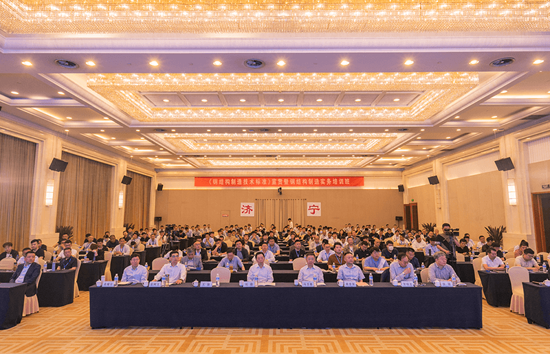 中國(guó)鋼結(jié)構(gòu)協(xié)會(huì)常務(wù)副會(huì)長(zhǎng)劉毅、中國(guó)寶武集團(tuán)首席專家賀明玄、金環(huán)建設(shè)集團(tuán)有限公司總工程師、副總裁張強(qiáng)、中冶建筑研究總院有限公司副總工程師吳耀華、中國(guó)鋼結(jié)構(gòu)協(xié)會(huì)秘書(shū)長(zhǎng)李慶偉、副秘書(shū)長(zhǎng)戴長(zhǎng)河、山東省鋼結(jié)構(gòu)行業(yè)協(xié)會(huì)會(huì)長(zhǎng)周學(xué)軍、副秘書(shū)長(zhǎng)劉哲等領(lǐng)導(dǎo)專家出席活動(dòng),來(lái)自全國(guó)各地鋼結(jié)構(gòu)制造企業(yè)的200余名代表參加培訓(xùn)。