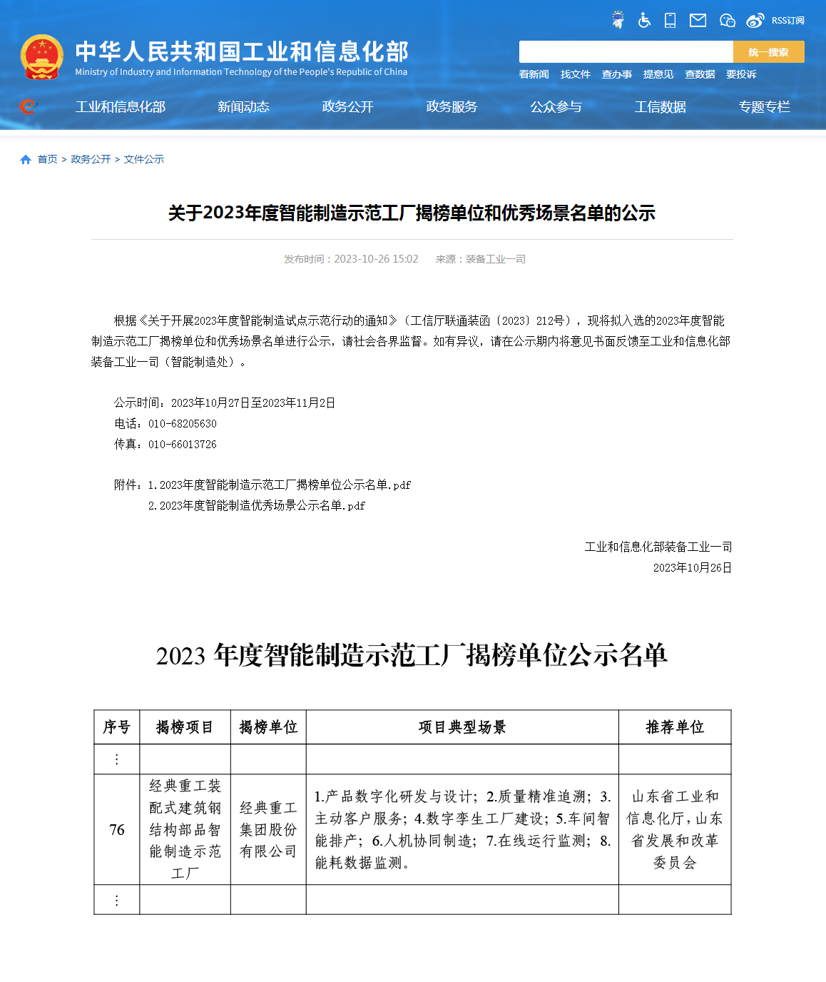 日前,工信部公布了《2023年度智能制造示范工廠揭榜單位名單》,經(jīng)典重工裝配式建筑鋼結(jié)構(gòu)部品智能制造示范工廠成功入選。