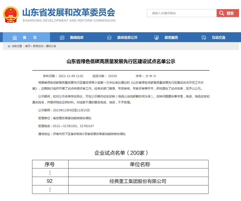 近日,山東省發(fā)展和改革委員會(huì)公示了山東省綠色低碳高質(zhì)量發(fā)展先行區(qū)建設(shè)試點(diǎn)名單,經(jīng)典集團(tuán)上榜企業(yè)試點(diǎn)名單。