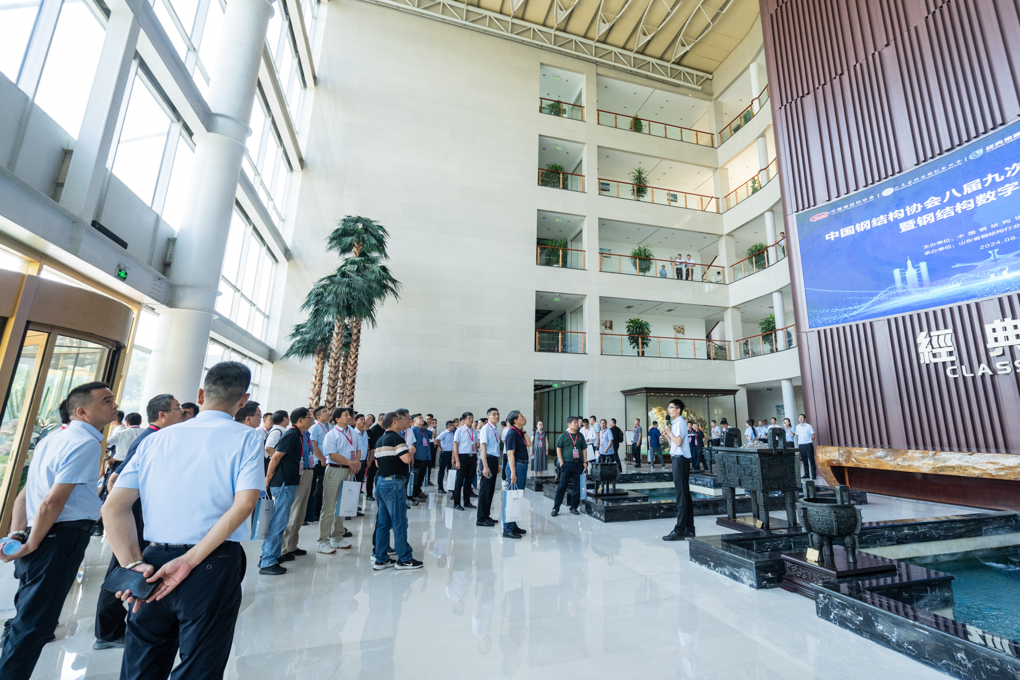 中國鋼結(jié)構(gòu)協(xié)會常務(wù)副會長劉毅,兗州區(qū)委副書記、區(qū)長王營,中國鋼結(jié)構(gòu)協(xié)會秘書長李慶偉,山東建筑大學(xué)教授、山東省鋼結(jié)構(gòu)行業(yè)協(xié)會會長周學(xué)軍,中國鋼結(jié)構(gòu)協(xié)會副會長、經(jīng)典集團(tuán)董事會主席苗樹文,經(jīng)典集團(tuán)董事長史振華以及兗州區(qū)委區(qū)政府領(lǐng)導(dǎo)、區(qū)建設(shè)主管部門領(lǐng)導(dǎo)、鋼結(jié)構(gòu)行業(yè)專家學(xué)者、行業(yè)協(xié)會會員單位代表、企業(yè)代表等200余人齊聚一堂,為鋼結(jié)構(gòu)行業(yè)數(shù)字化發(fā)展共謀良策,譜繪藍(lán)圖。