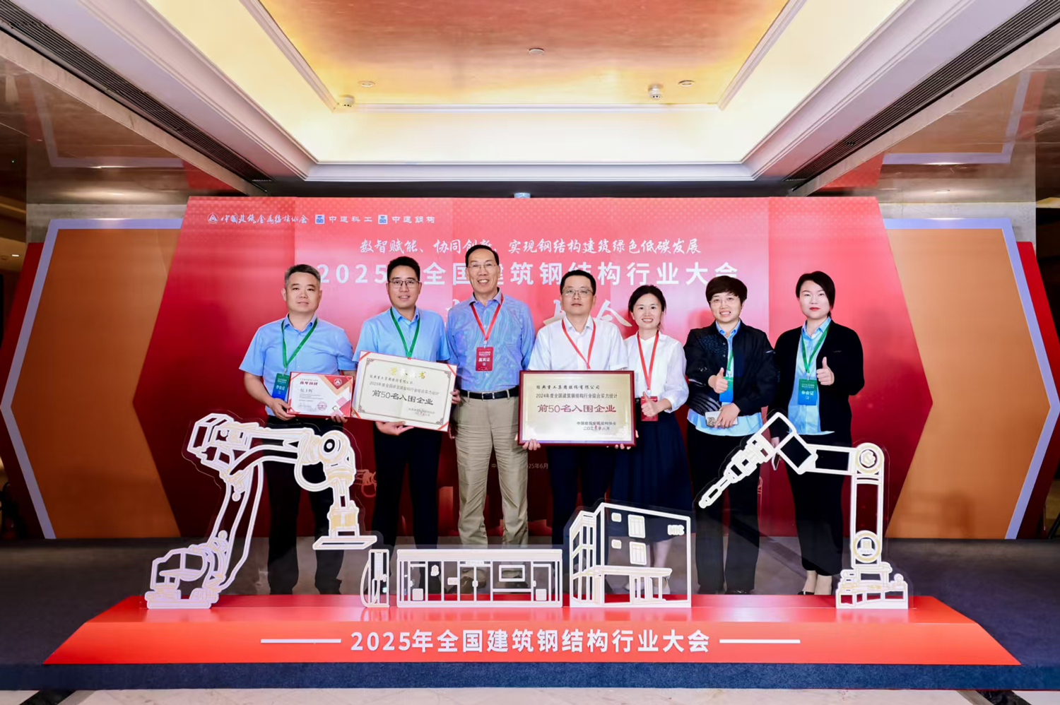 在備受矚目的表彰環(huán)節(jié),經(jīng)典集團(tuán)捷報頻傳,實(shí)力彰顯。集團(tuán)再次穩(wěn)居“2024年度全國建筑鋼結(jié)構(gòu)行業(yè)綜合實(shí)力統(tǒng)計前50名入圍企業(yè)”榜單,蟬聯(lián)榮耀,行業(yè)領(lǐng)先地位持續(xù)鞏固。集團(tuán)副總經(jīng)理侯士輝榮膺“2025年建筑鋼結(jié)構(gòu)行業(yè)青年榜樣”稱號,展現(xiàn)管理層的活力與擔(dān)當(dāng)。前期營銷中心顏慧還榮獲了“2024年度建筑鋼結(jié)構(gòu)行業(yè)巾幗模范”榮譽(yù)稱號。這些榮譽(yù)的獲得,是業(yè)界對經(jīng)典集團(tuán)綜合實(shí)力、創(chuàng)新活力及人才隊伍建設(shè)的高度認(rèn)可與褒獎。